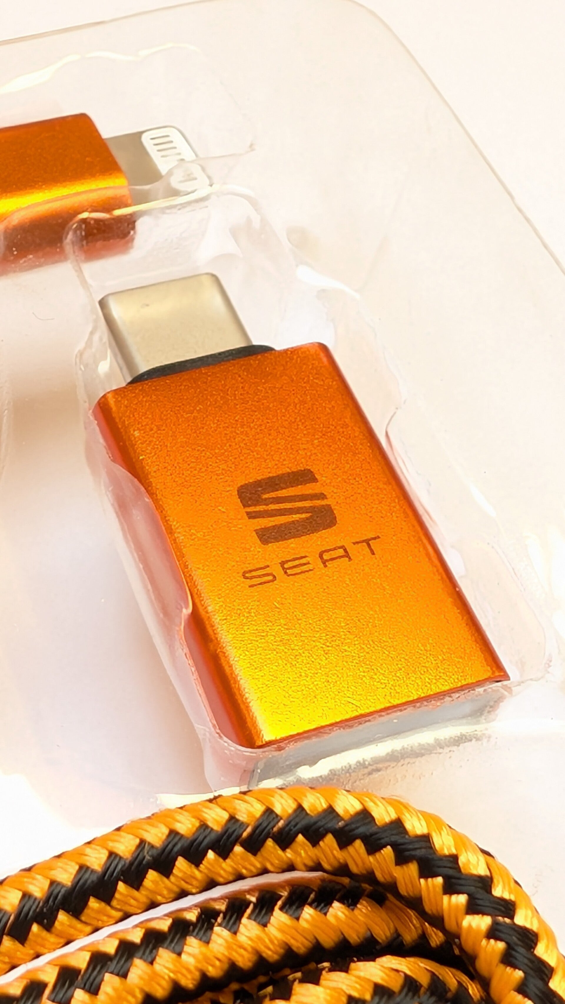 The Genuine Seat 3in1 USB-C USB Charging Data MFI Cable is a high-quality charging cable made from aluminium, designed for compatibility with Apple and Android devices. The cable features a cable length of 1m, making it suitable for everyday use. Its plain design and orange colour add a touch of style to your mobile phone accessories. With lightning, USB-C, and micro-USB connectivity, this cable provides versatile options for charging and data transfer. Made by Seat, a trusted brand, this cable is a reliable and durable choice for your mobile phone needs.